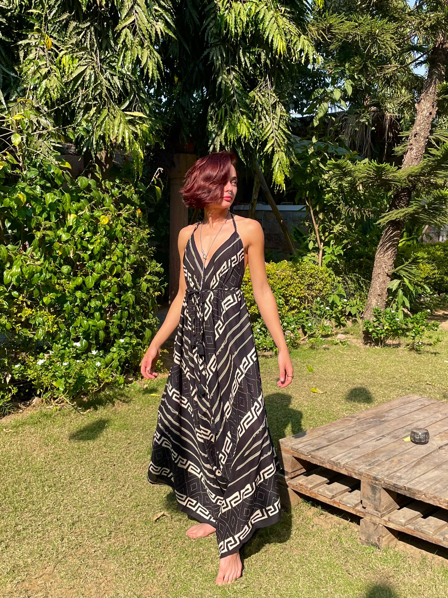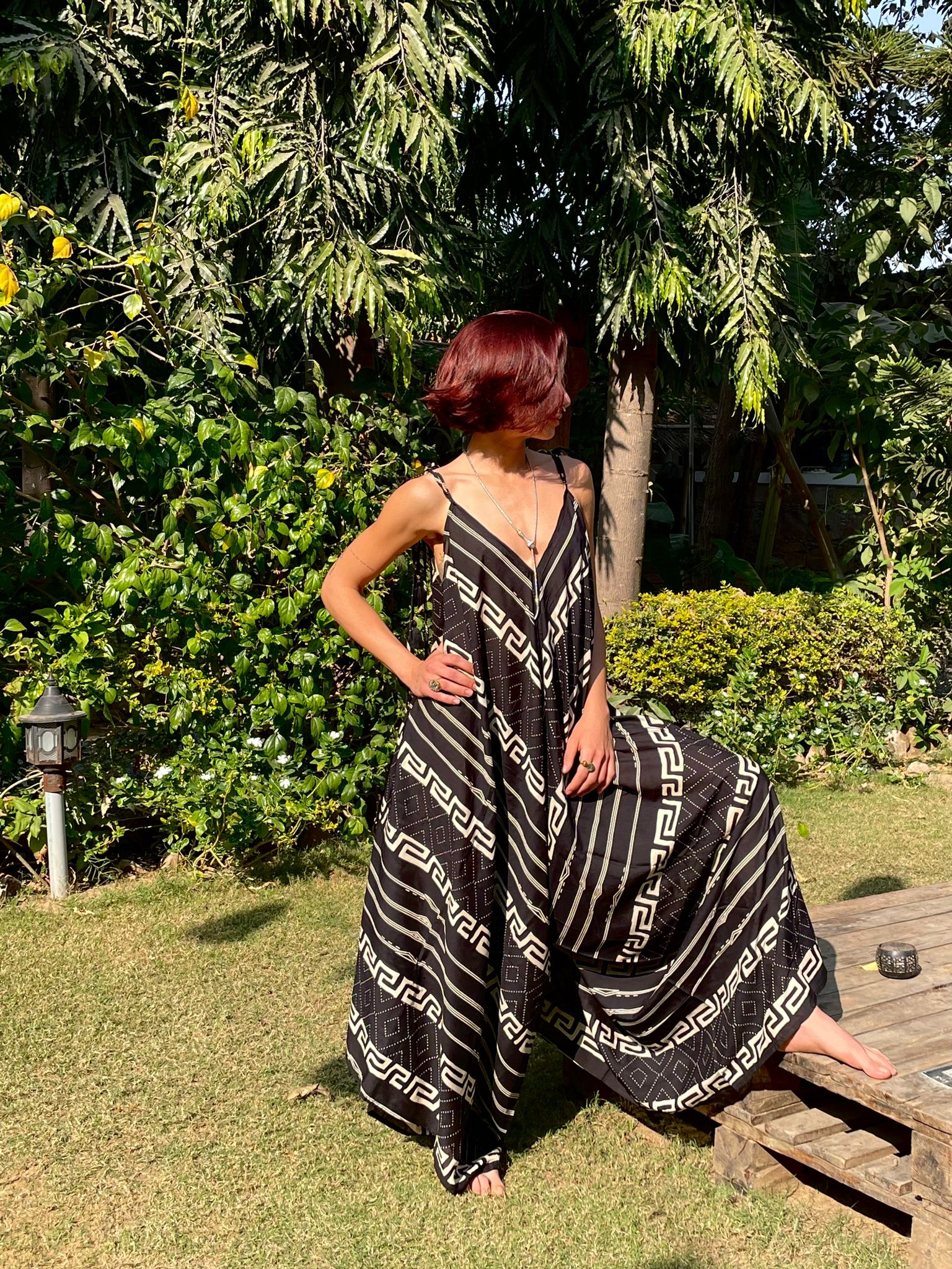 Made from soft, breathable rayon fabric with an adjustable waist and straps, it effortlessly combines comfort with chic, travel-ready style.