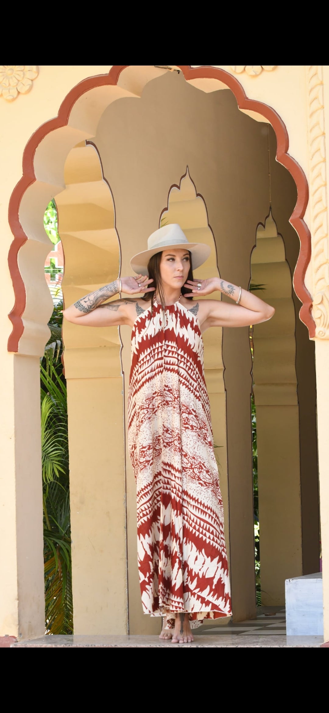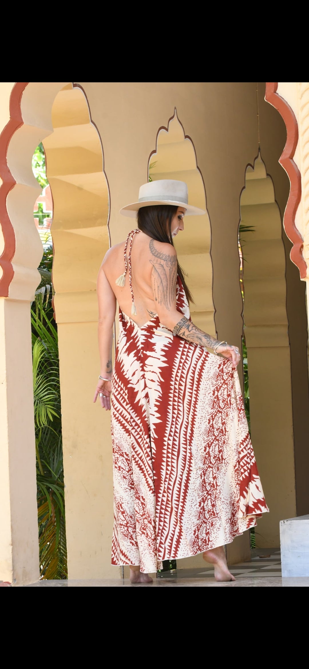 Elegant open back long dress made of soft, flowing premium quality rayon.