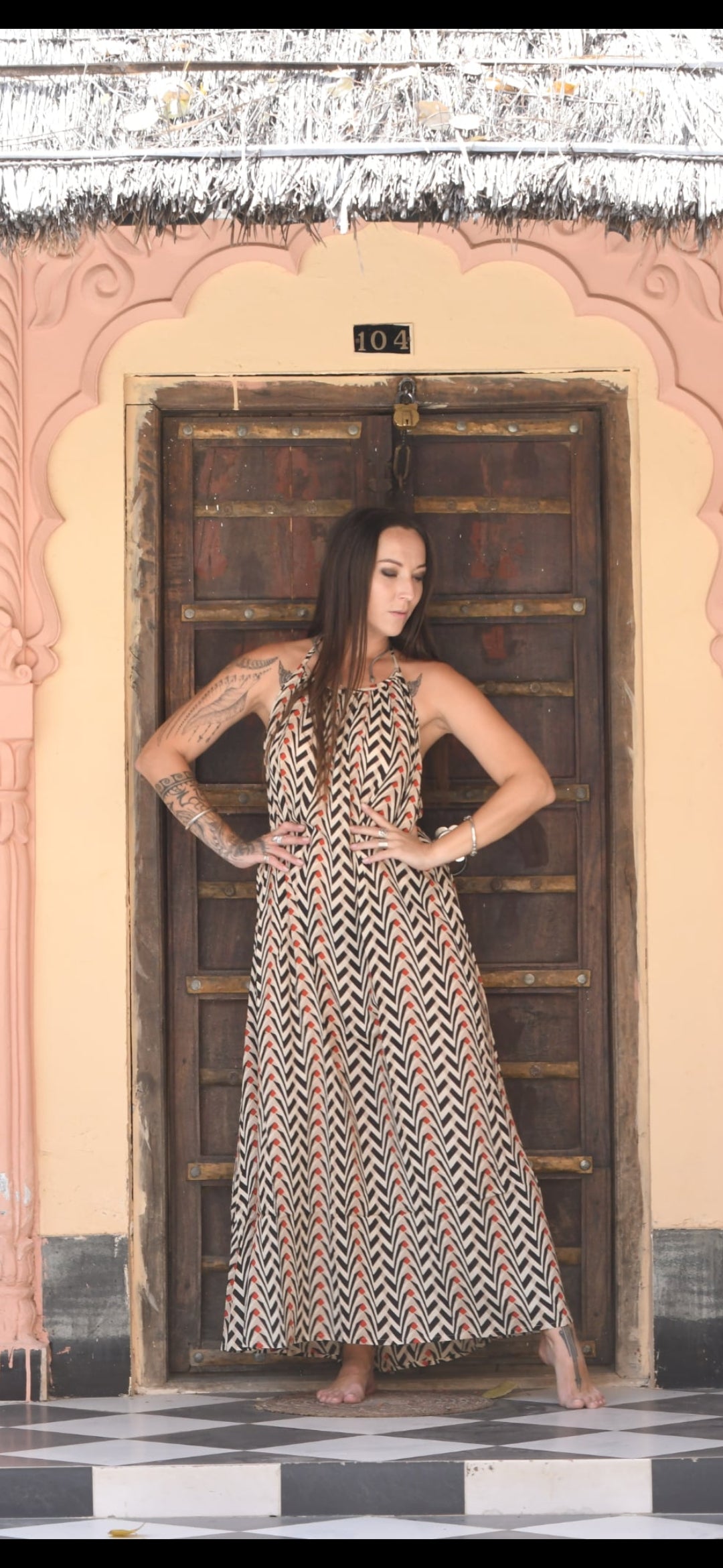 Elegant open back long dress made of soft, flowing and very light premium quality rayon.